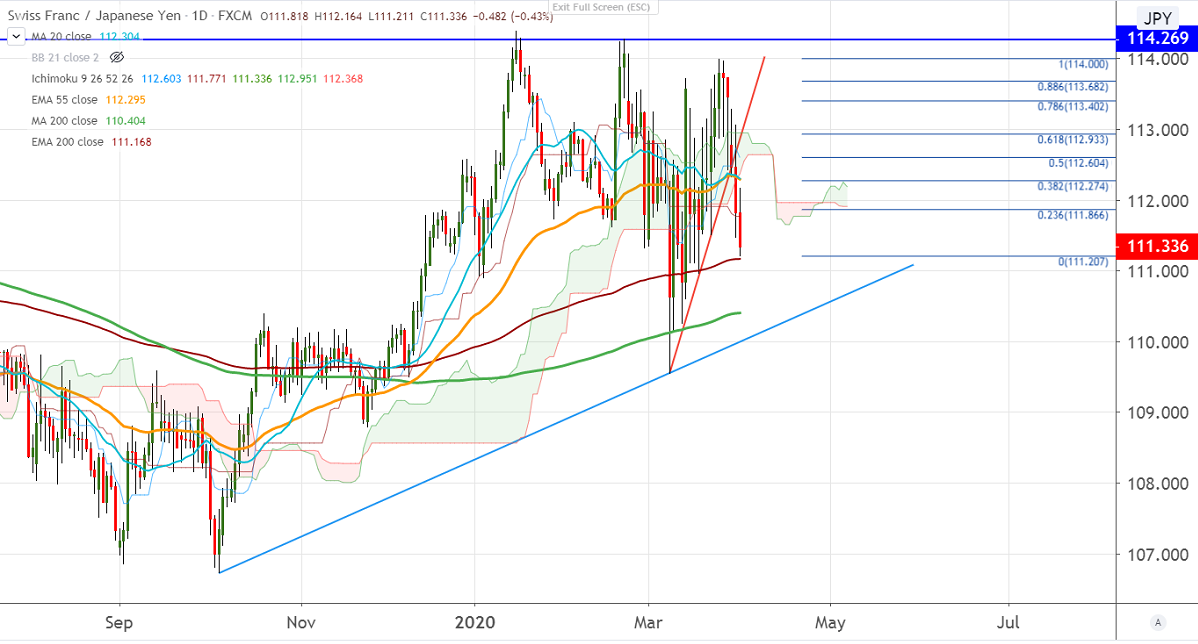 On the flip side, near term support around 111.16 (200-day MA) and any violation below will drag the pair down till 110.40/109.50.