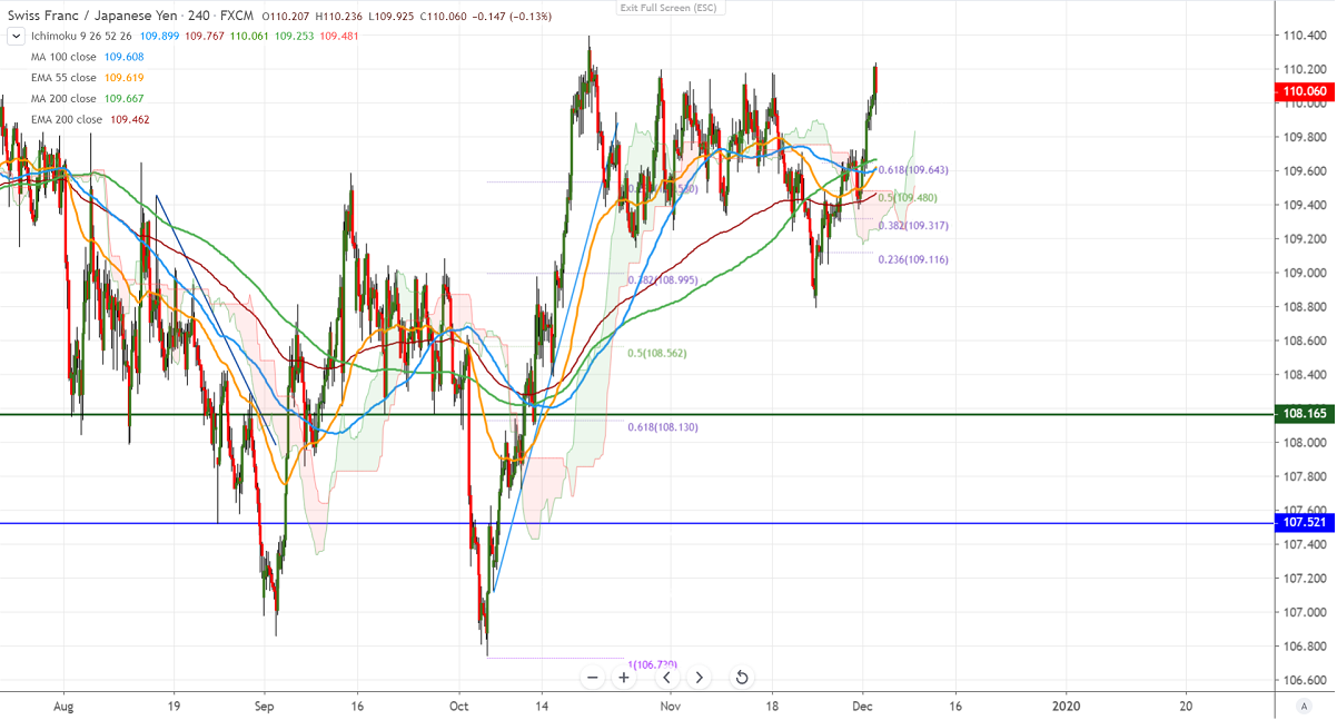 As per our analysis, CHJPY is trading higher for 7th consecutive days and jumped nearly 150 pips to 110.23. The pair has halted its bullish trend and lost 20 pips within an hour on strong yen. The renewed trade war between the US and other major countries such as France, Argentina, and Brazil has increased demand for safe-haven assets like yen, gold, etc. It is currently trading around 109.98.