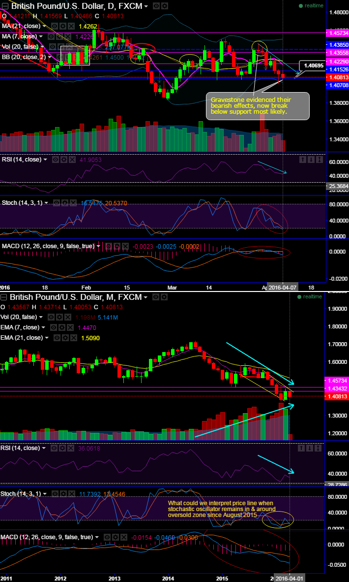 During the intraday sessions with bearish sentiments mounting the pair has been able to break below these supports at 1.4070.