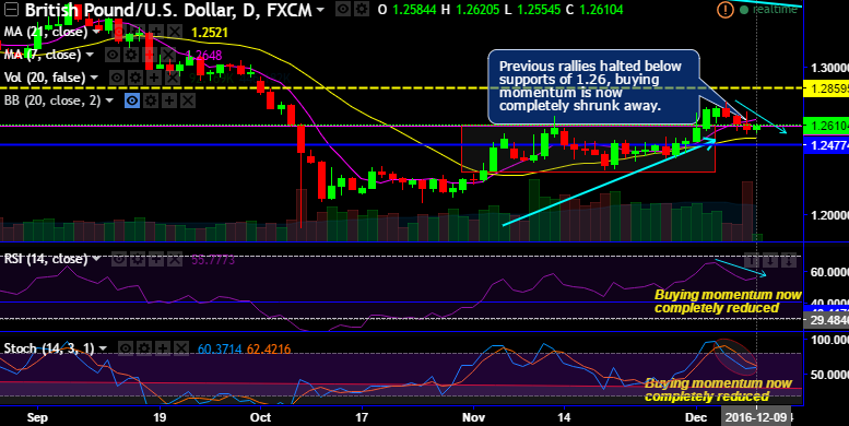 The interim bulls have now halted in the recent past, slide below strong support at 1.26 levels and you could see buying momentum is absolutely shrunk away (see daily charts).