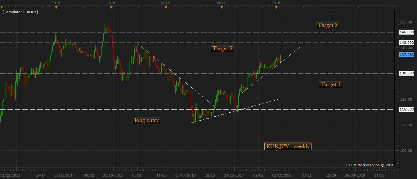 As the EUR/JPY reached our stipulated target in August 2017, in a subsequent call review in July, which is available https://www.econotimes.com/FxWirePro-Euro-reaches-target-at-130-against-yen-target-extended-to-142-823730 we extended our target from 130 to 142.