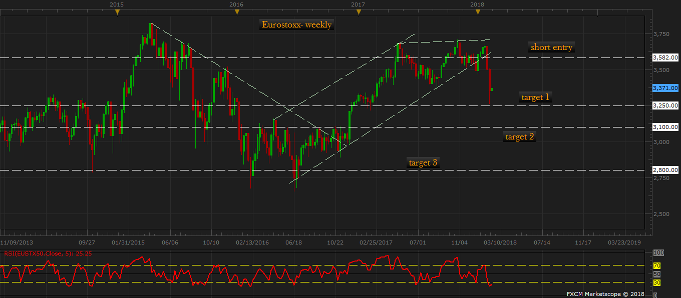 Back in November 2017, in an article named, “FxWirePro: Sell Eurostoxx50 targeting 3250”, available at http://www.fxwirepro.com/fxwire/popup/newsPopup?id=777979 , we urged our readers to go short in the European blue-chip index Eurostoxx50 at the then current rate of 3582 with a target around 3250 area. Despite the bigger trend remaining buy, our calculations suggested that the index is ripe for a correction. We suggested stop loss at 3720 area.