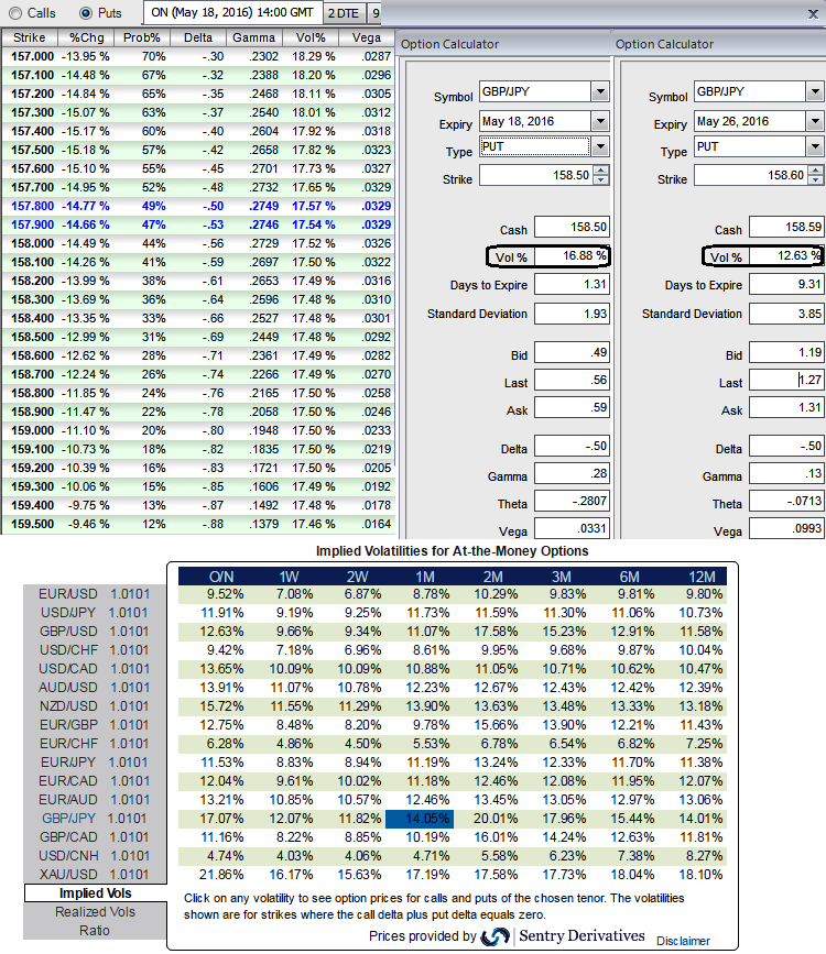Please have a glance on implied volatilities of ATM puts, the current IVs of this pair is at 17%.