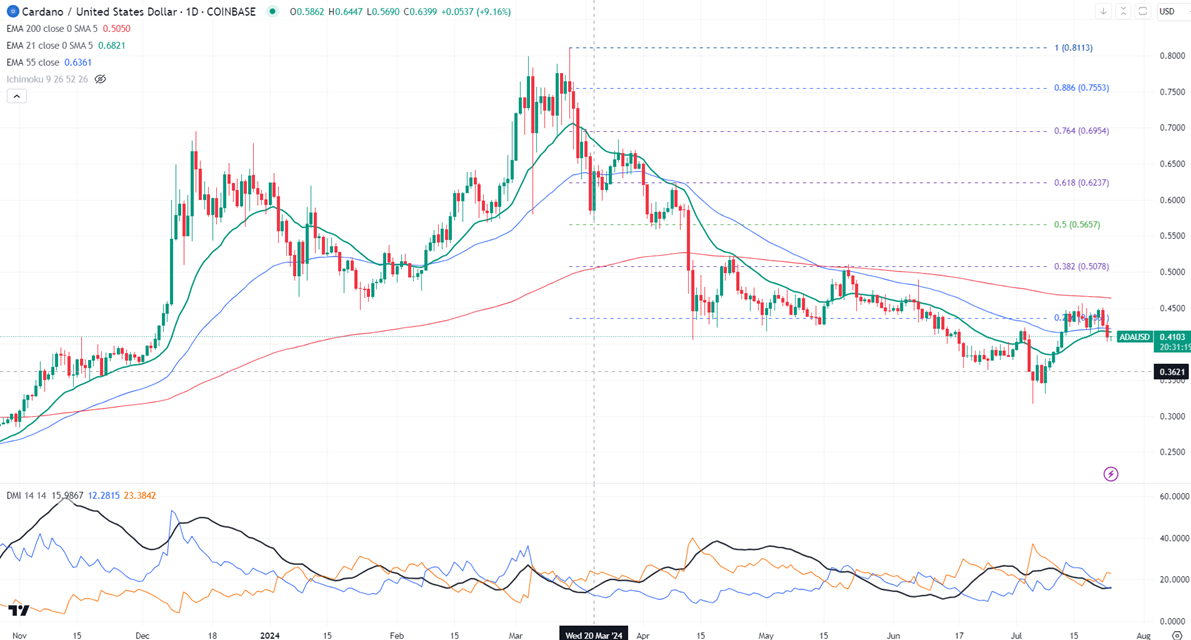 The immediate resistance stands at around $0.50. Any breach above confirms bullish continuation. A jump to $0.62/$0.75 is possible. A surge past $0.80 will take it to $1.