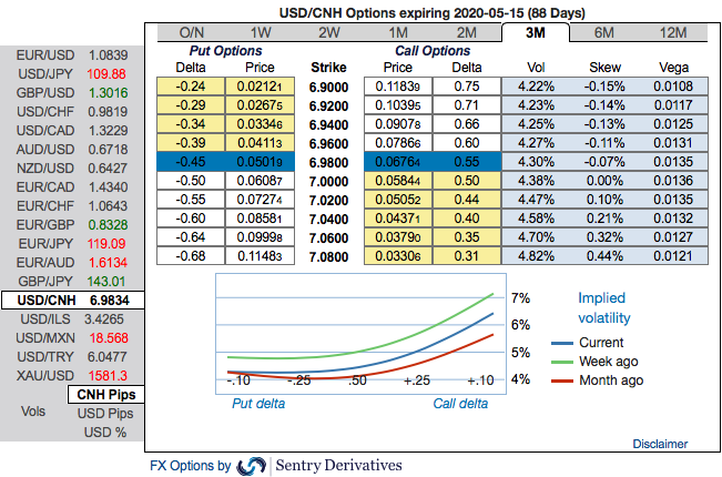 For now, please be informed that USDCNH positively skewed IVs of 3m tenors still indicate the upside risks, they are still bids for OTM call strikes up to 7.16 levels.