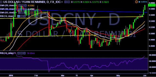 - A sustained close above 6.5908 marks will test key resistance at 6.6042 (January 07, 2016 high) marks.