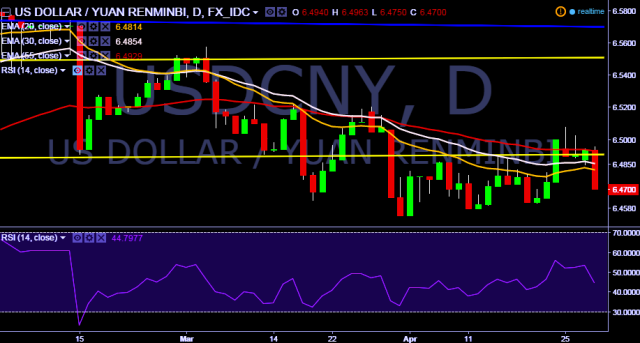 We prefer to take short position in USD/CNY around 6.4750, stop loss 6.4910 and target 6.4531 levels.