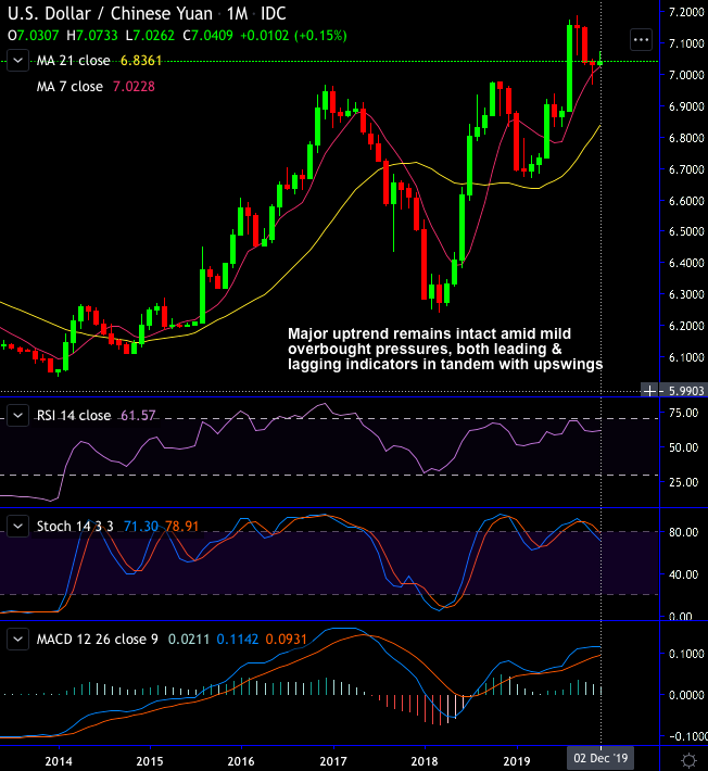 China is acceptable of a stable CNY only up to a certain point. Flexibility in the exchange rate is needed to ensure monetary policy independence and a weaker exchange rate over the medium term may still be needed to ensure China’s transition to a lower economic growth rate is a sustainable one. From the last 2-3 months, the USDCNY has been dipping constantly but the major uptrend remains intact, a break below 7.00 levels would put USDCNY comfortably below the tariff neutral level. This is also an important difference between conditions now and those that prevailed in 2018. At that time, USDCNY was trading above tariff neutral levels. Hence it was easier to justify a rebound in CNY after the trade truce at the beginning of December. The other key difference is that cyclical conditions are decidedly weaker now compared to the end 2018 period.