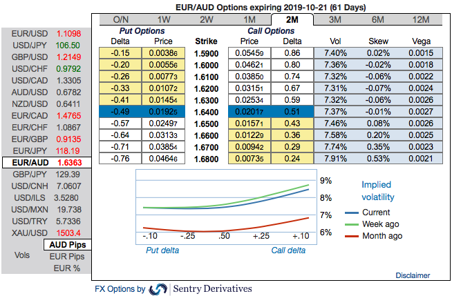OTC Indications and Options Strategy: Please be noted that IV skews of EURAUD are stretched on either side, the positively skewed IVs of 2m tenors are signifying more hedging interests in bullish than bearish risks. More bids for OTM calls of this tenor indicate that the underlying spot FX likely to spike up to 1.68 levels and bids for OTM puts show 1.59 levels.