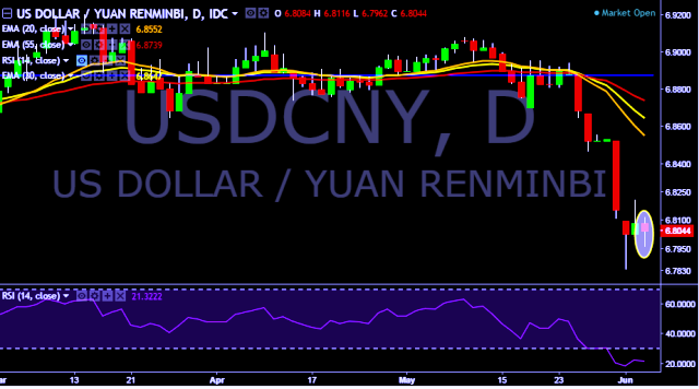We prefer to take short position in USD/CNY around 6.8075, stop loss 6.8298 and target of 6.7520.