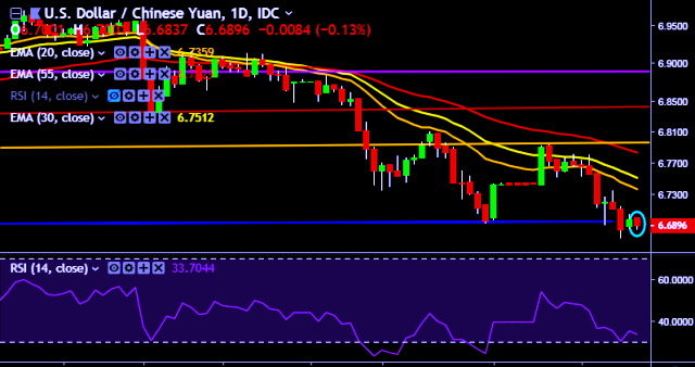 We prefer to take short position on USD/CNY around 6.6930, stop loss at 6.7150 and target of 6.6722/6.6650.
