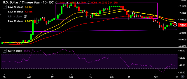- Alternatively, a daily close below 7.0180 will drag the parity down towards key supports at 6.9765, 6.9525, 6.9297 and 6.88 marks respectively.
