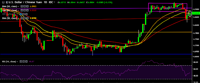 We prefer to take long position on USD/CNY around 6.8750, stop loss at 6.86 and target of 6.9150.