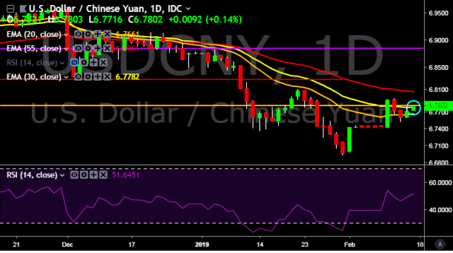 We prefer to take long position on USD/CNY around 6.7740, stop loss at 6.7510 and target of 6.8072.