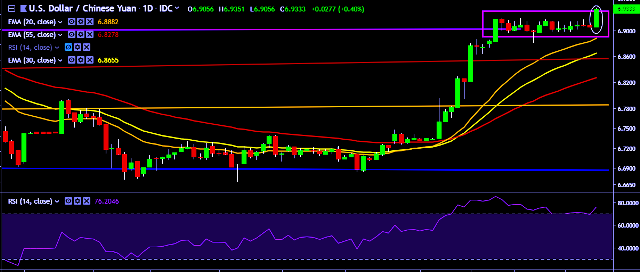 - A sustained close above 6.9181 marks will test key resistances at 6.9248, 6.94 and 6.9648 marks respectively.