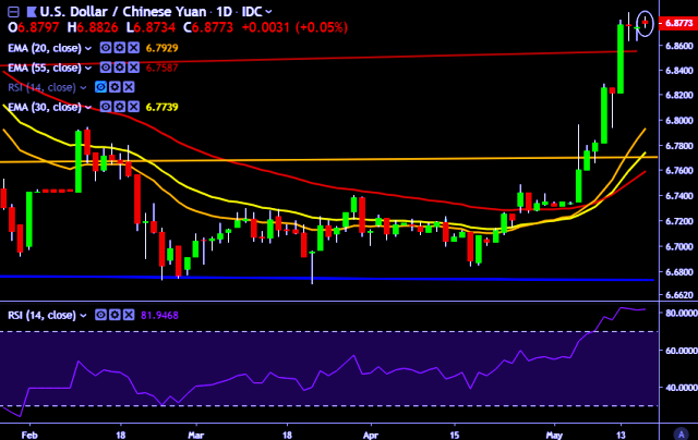 - It made intraday high at 6.8826 and low at 6.8734 levels.