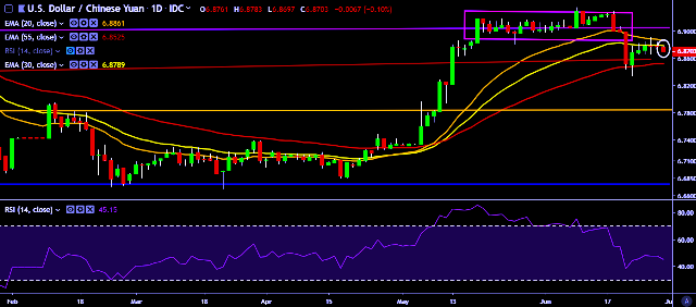 We prefer to take short position on USD/CNY around 6.8750, stop loss at 6.8850 and target of 6.84/6.8210.