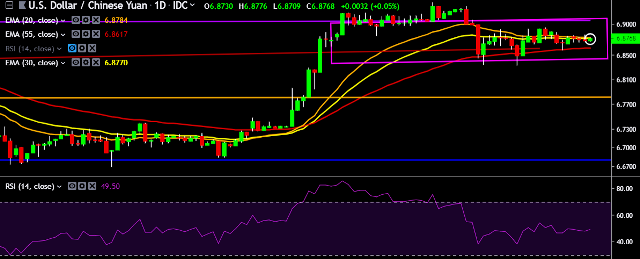 We prefer to take short position on USD/CNY only below 6.8700, stop loss at 6.8924 and target of 6.8492.