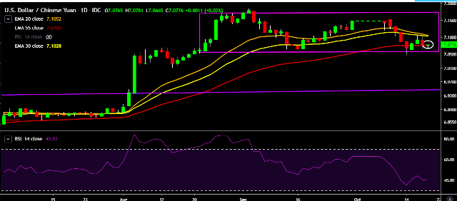 We prefer to take short position on USD/CNY only below 7.0644, stop loss at 7.09 and target 7.0474/7.0108.
