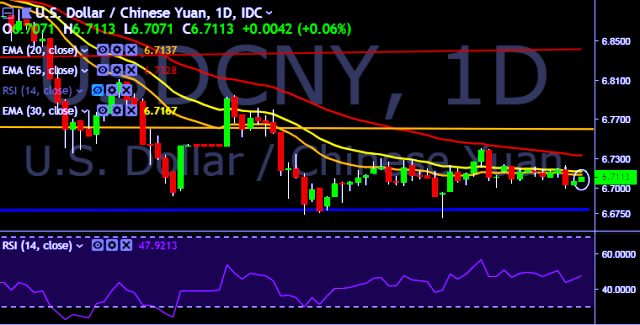 We prefer to take short position on USD/CNY only below 6.7000, stop loss at 6.7210 and target of 6.6853/6.6650.
