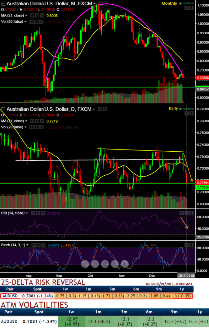 The pair has slid below strong supports at 0.7070 from the today's highs of 0.7171, currently hanging at the same juncture. This has to be perfectly served as the next bearish setup for the AUDUSD theme.