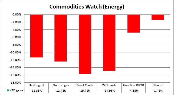 - The best performer of the group is Ethanol, which is down by 1.4 percent so far this year.