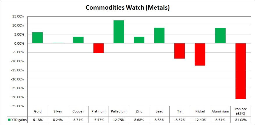 - The worst performer is Iron ore, which is down 31.1 percent, followed by Nickel (-12.4 percent), Tin (-8.6 percent), and Platinum (-5.5 percent).