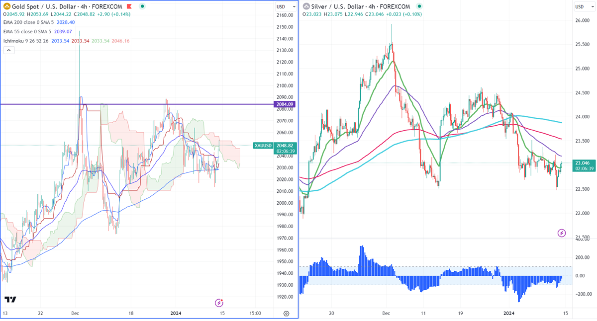 Gold showed a nice pullback despite strong US CPI data. US headline CPI rose to 3.4% YoY, compared to a forecast of 3.2%. Annual core CPI increased 3.9% from 4% in November. It hit a low of $2013.39 and is currently trading around $2040.55.