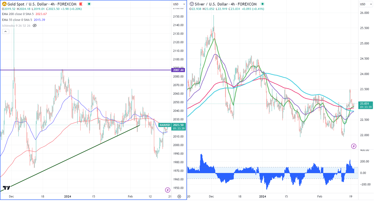 Gold traded flat as the US markets remained closed yesterday. With no major economic indicators to be released today. Markets await US FOMC meeting minutes for further movement. The yellow metal hit a high of $2023.16 at the time of writing and is currently trading around $2022.91.