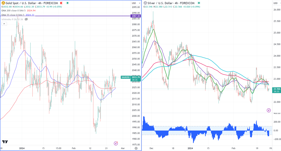 Gold trades flat ahead of US durable goods orders. New home sales rose 1.5% m/m in Jan to a seasonally adjusted annual rate of 661000 compared to a forecast of 680000. The yellow metal hit a high of $2034.60 at the time of writing and is currently trading around $2033.43.