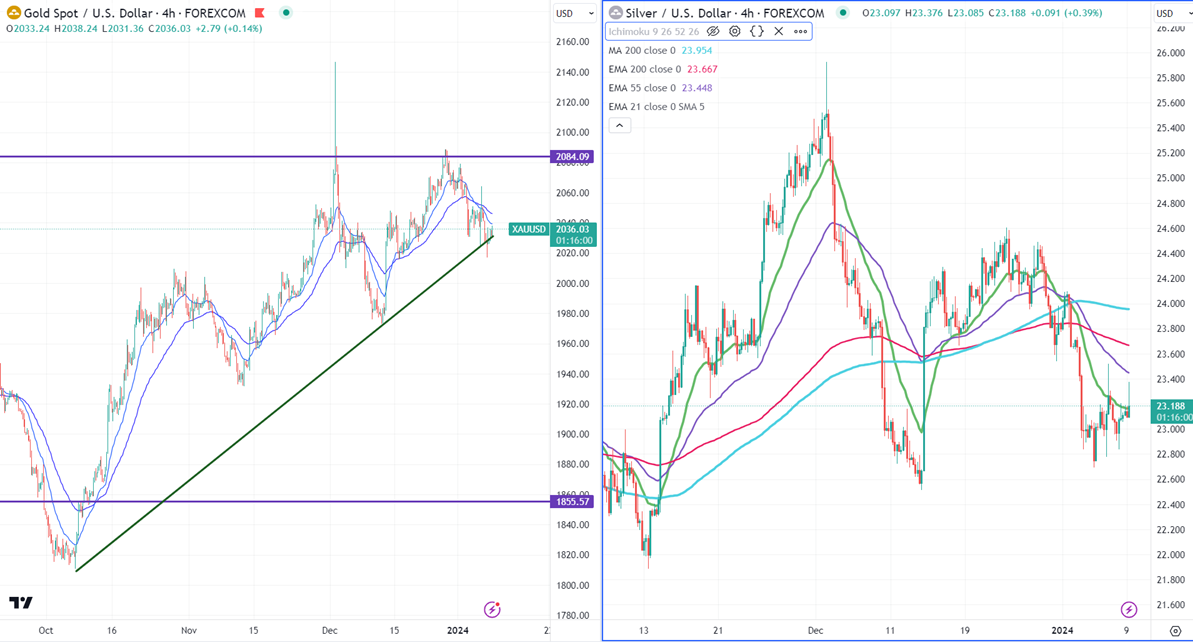 Gold showed a minor recovery after a massive sell-off. The yellow metal lost its shine after upbeat US jobs data. It hit a high of $2038 and is currently trading around $2034.11.
