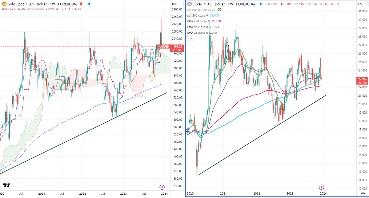 Gold was one of the worst performers the previous week on board-based US dollar buying. It hit an all-time high of $2146. It is currently trading at around $1996.56.