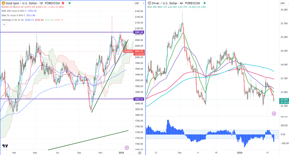 Gold is trading weak for a second consecutive day on a strong US dollar. The New York Federal Reserve's Empire State declined 29.2 points to 43.7, the lowest level since May 2020. It hit a low of $2017 and is currently trading around $2021.05.