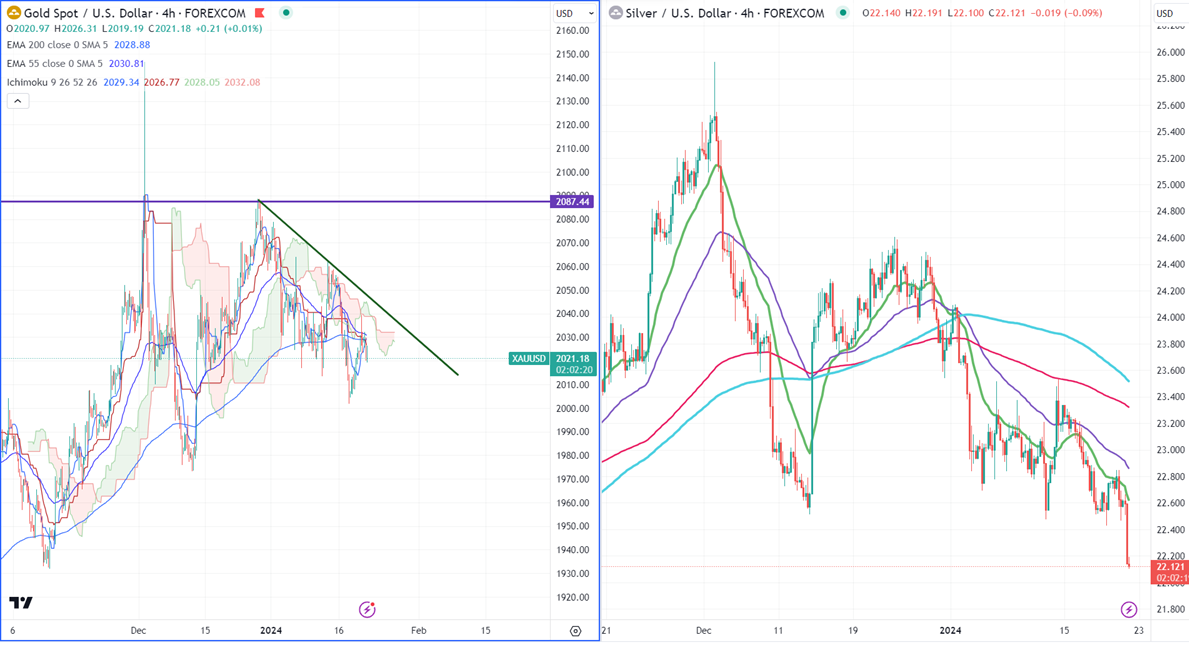Gold lost more than $50 in the previous week on board-based US dollar selling. The University of Michigan rose to 78.80 in Jan compared to a forecast of 69.80, the highest level since Jul 2021.t of -7.0. US existing home sales declined for the 12th consecutive month to a seasonally adjusted annual rate of 3.7 million. The yellow metal hit a high of $2039.48 and is currently trading around $2022.68.