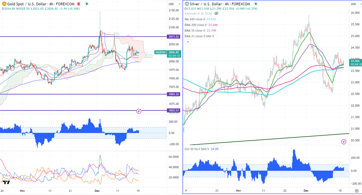 The dovish comments from Fed members and easing treasury yields support the yellow metal lat lower levels. San Francisco President Mary Daly said in a Wall Street Journal interview that it is appropriate for the Fed to consider rate cuts in 2024.