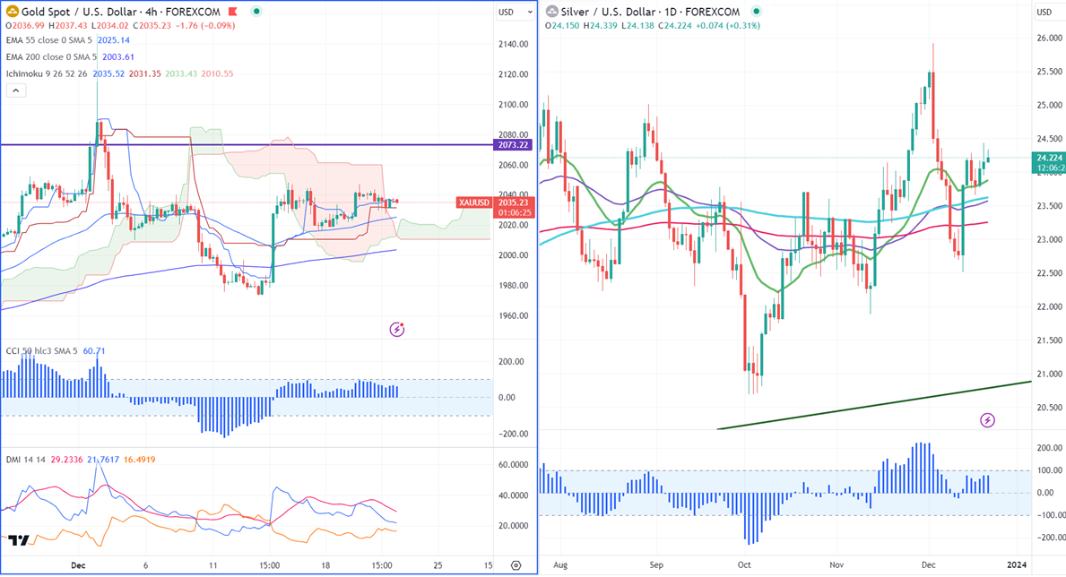 The near–term support is around $2015, a break below targets of $2000/$1970. The yellow metal faces minor resistance around $2050 and a breach above will take it to the next level of $2070/$2100.