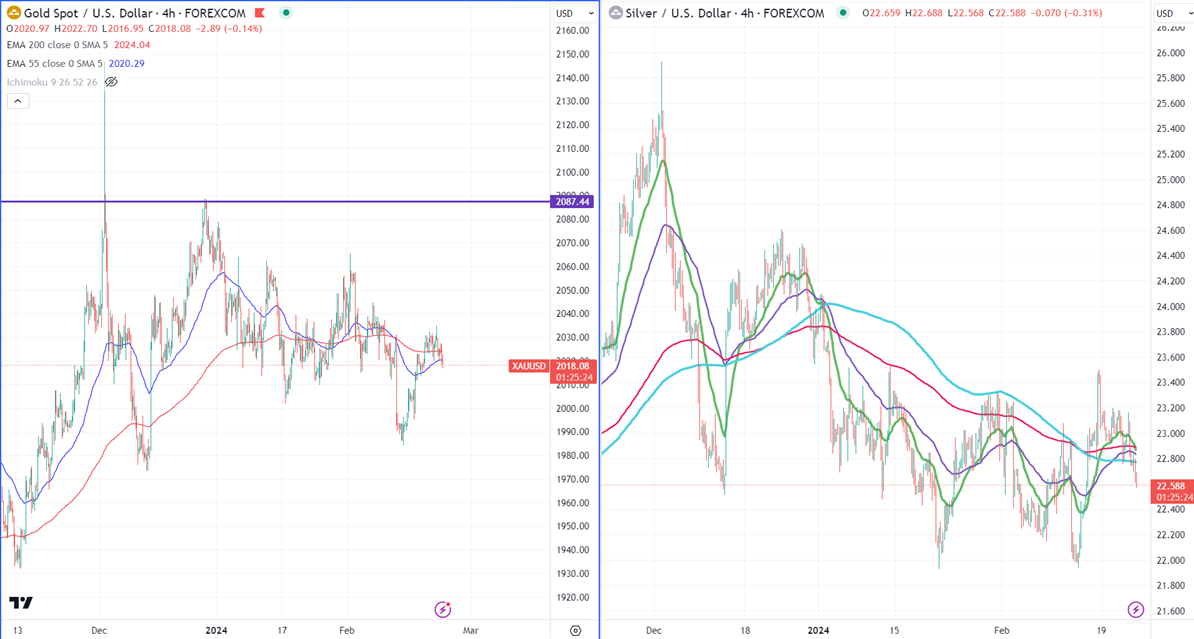Gold pared some of its gains as the US dollar recovered. The S&P flash US manufacturing came above estimate. While the US flash services PMI dropped to 51.30 vs. the forecast of 52.40. The yellow metal hit a low of $2018 yesterday and is currently trading around $2018.