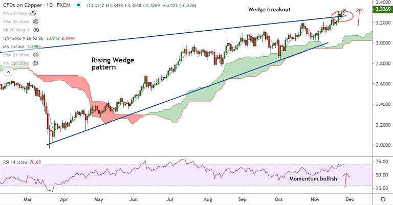 Copper marches ahead to extend its bull run for the 4th straight week. More upside on charts.