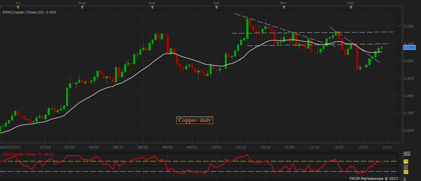 Sell Copper at the current price of $3.08 with an interim target of $2.98 and final target of $2.90 per pound with a stop loss around $3.18 area.