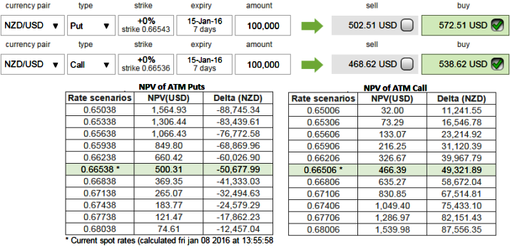 Kiwi dollar after a long lasted losing streak that was started from last 1 year or so to hit almost 6 year's lows has now changed its direction. Buy 2m (mid month) at the money -0.5 delta put and simultaneously short 1w near month contract (1%) in the money call with positive theta value.