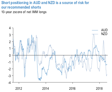 Nonetheless, that shorts in both AUD and NZD are outsized (refer 1stchart) are a cause for concern and thus continue to warrant monitoring of the mix in China's policy response in the coming weeks, making us tactical on these trades (a preference for fiscal/infrastructure over monetary would be more supportive for Antipodean FX).