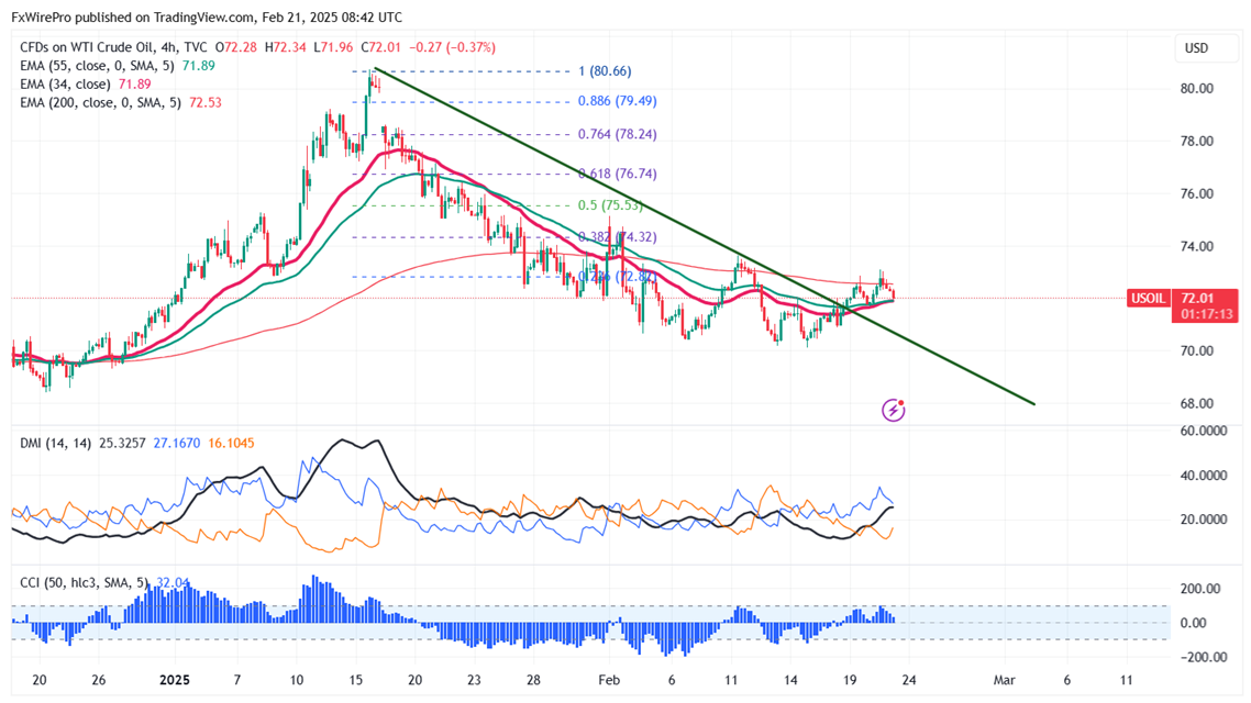 The near-term resistance is around $72.11; any breach above this level could push prices higher to $72.85/$73.06/$74.32/$75. On the downside, immediate support is at $71.80 violation below targets of $70.80/$70/$68/$65.50.