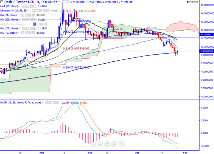 DASH/USDT slightly gained from the low of USDT8.88 till USDT9.63 levels (Poloniex). It is currently trading around USD9.61 at the time of writing.