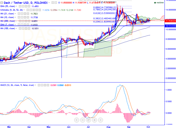 The pair has retreated sharply after jumping till USDT12.40 (Poloniex). It is currently trading around USDT11.67 at the time of writing.