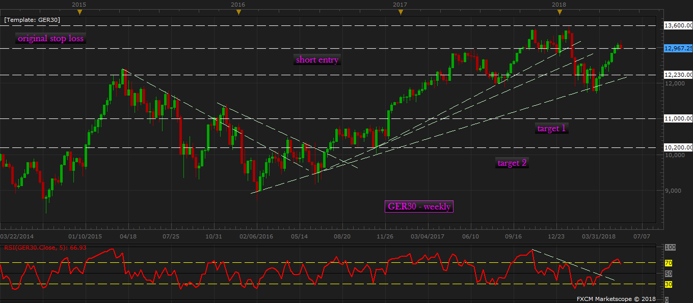 At this point, we would recommend re-entering the short positions as our short to medium term outlook for the DAX remains bearish.