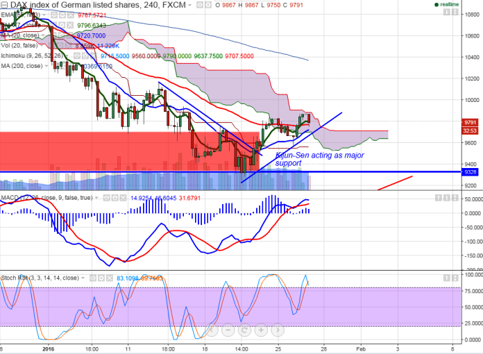 - Any minor weakness can be seen only below 9560 (Kijun-Sen) and any break below 9560 will drag the index down till 9420/9300.