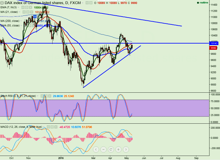- DAX has made a high of 10110 yesterday and declined till 9970 at the time of writing. It is currently trading around 9985.