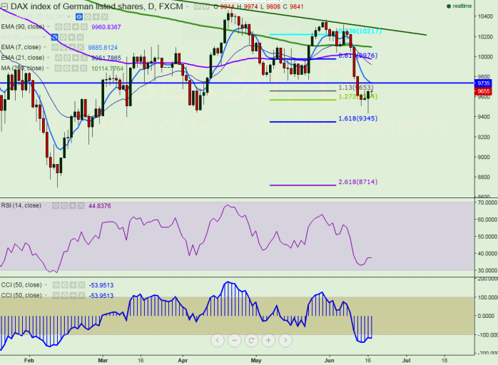 - Any break above 9761 will take the DAX till 9825/9900 in the short term. On the lower side , any break below 9550 will drag the pair down till 9500/9430/9345/9300.