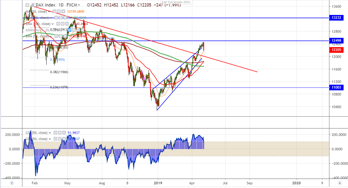 DAX lost more than 2% from high of 12454 made on Friday after US Trump’s tweet about US-Sino trade deal. Trump made it clear that US will impose more tariffs on Chinese goods. It will hike import duty of 200bn Chinese goods from 10% to 25%. It hits intraday low of 12166 and is currently trading around 12255.