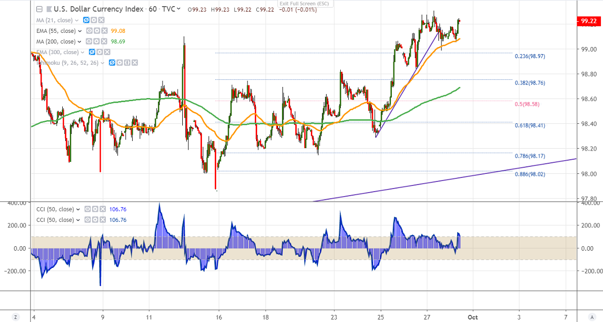 It is good to buy on dips around 98.85-90 with SL around 98.60 for the TP of 99.35/100.